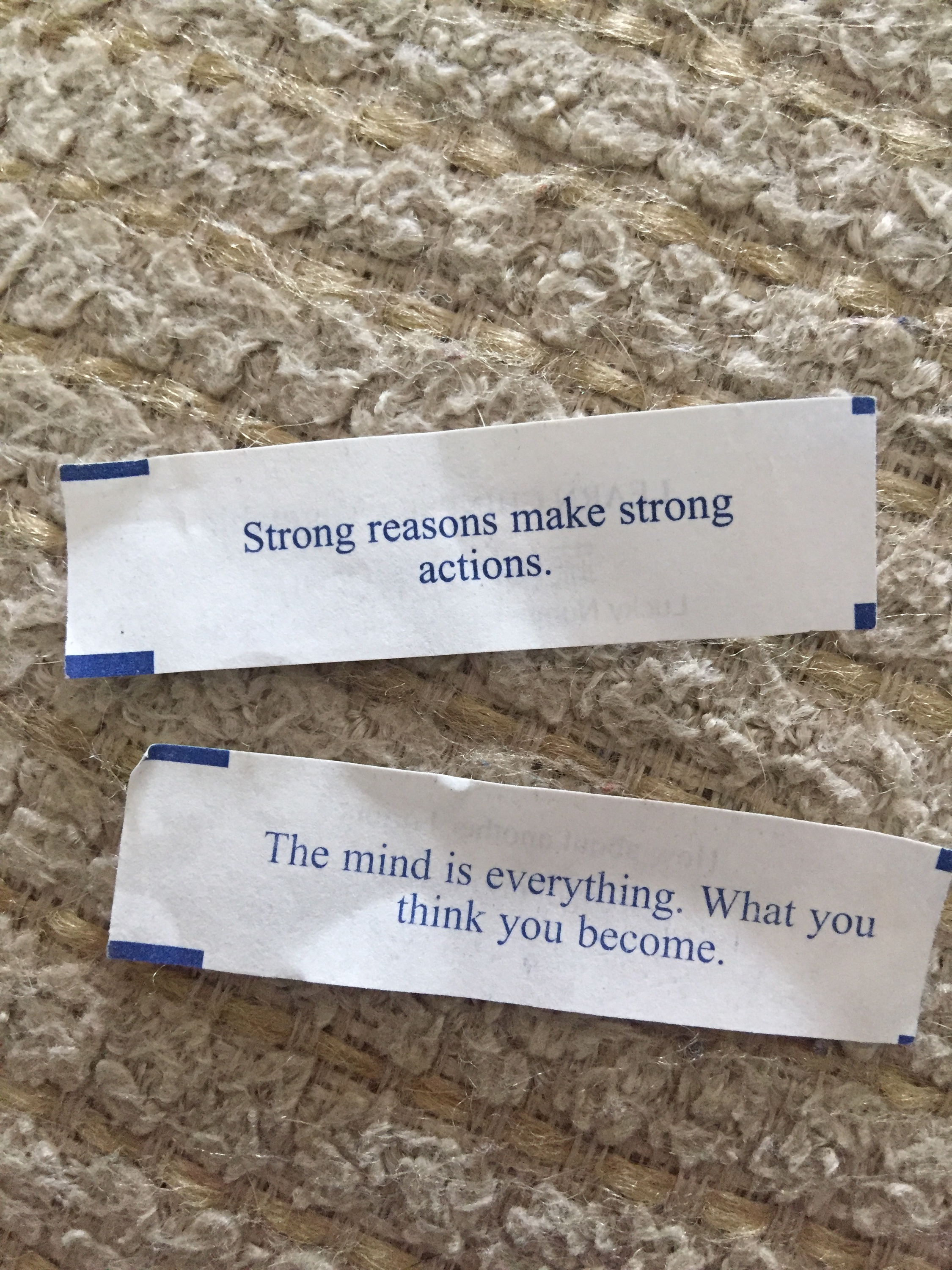 I believe in messages that can help us find our purpose. I was meant to have a blank slate to keep the will in winning and make strong actions. I will continue to pursue my fortunes in life always. I did get that other one— : ” The mind is everything. What you think, you become.” Sounds like Warrior to me…