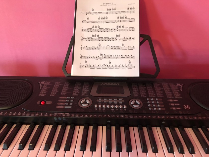 Well, guess my brain wanted to learn the notes for “Unstable.” Not that whole song you see above but just the three basic ones. It’s so simple! The music itself looks complicated but really it isn’t. I got it after a few short tries. Nobody recognized this but me, probably not even my brother. Many times I’d be psyched about seeing the Ultimate Warrior on T.V. or an upcoming match, I’d pass by the piano in our dining room. I’d play those three repetitive notes of “Unstable.” Also, when I’d be having a bad day and needed a pick me up, those notes on that piano worked every single time.