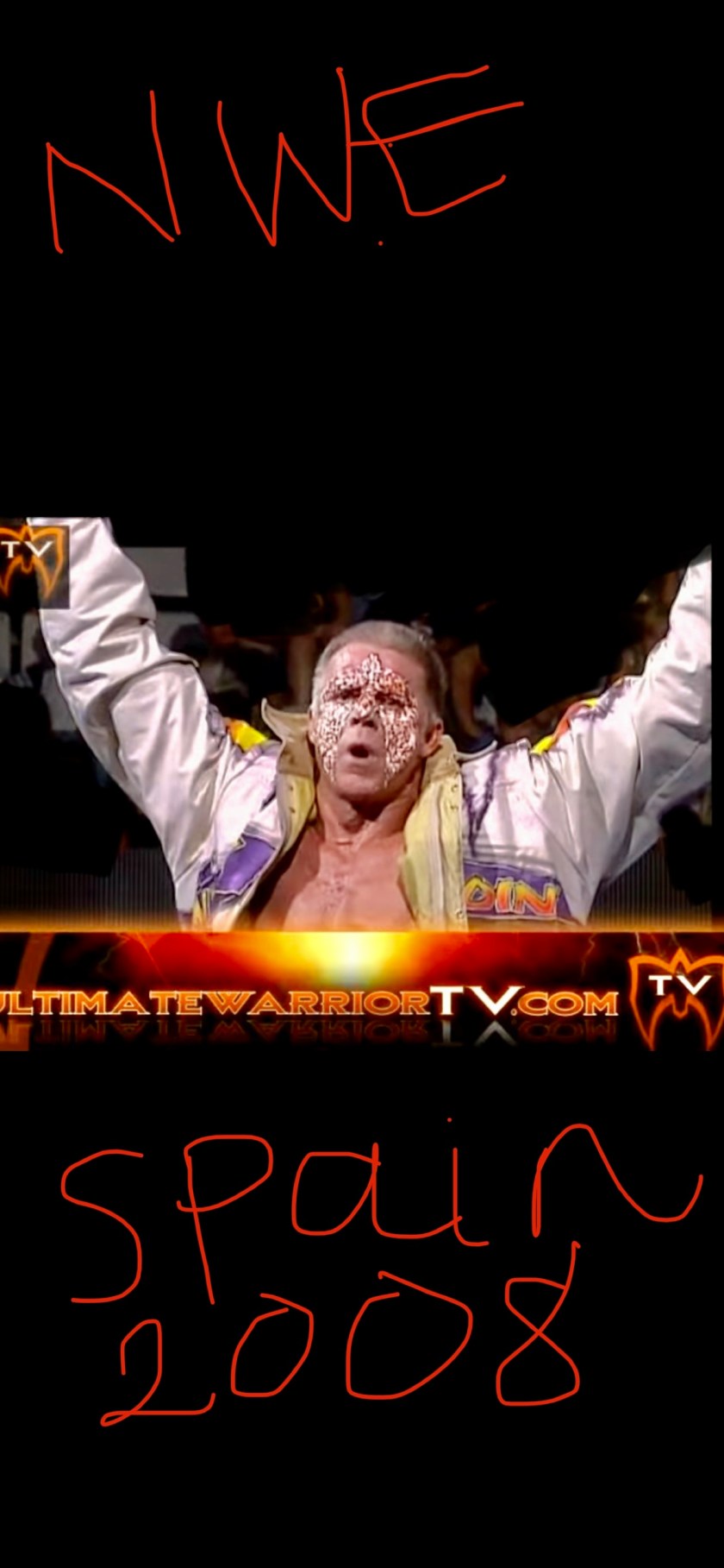 Once again, I wanted to share a different opportunity Warrior had so you see his 2008 return match in Spain here. This was 10 years after he officially retired from wrestling and also 6 years before he passed. 6 again. Am sure most fans have seen this NWE (Nu Wrestling Evolution) match involving Orlando Jordan but I wanted to learn a little more, so I did. Why Spain? Well, Warrior was there receiving an award in Madrid from an Italian wrestling organization as this all came about. It wasn’t really a “comeback” in true fashion but more of a one time return to the ring. I believe he also wanted to show those cute little girls of his what Daddy did. My favorite parts are seeing them in the ring with him, oh my heart… π