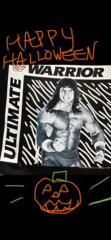 However you do Halloween or the celebratory days after, just be safe and have fun. You can be a saint or spook, but avoid the trouble. Let’s honor and respect those who have gone before us in a memorable way and be happy for their time here. That is what they want from us. You can scare but do it in a fun way and not a frightful one. Happy Halloween, All Saints, all Souls, and whatever else you choose. Just don’t dress up as The Undertaker or Papa Shango! 😯Anyone remember 10 years ago when I saw a boy at my son’s school dressed as Ultimate Warrior for their Halloween parade? That was a post all its own and I will link below. Oh, my tears back then… 😭No pic of him on that post although I took a few just for me. The back of him and not his face. I am no stalker! At least I hope those kids didn’t think so…🫣