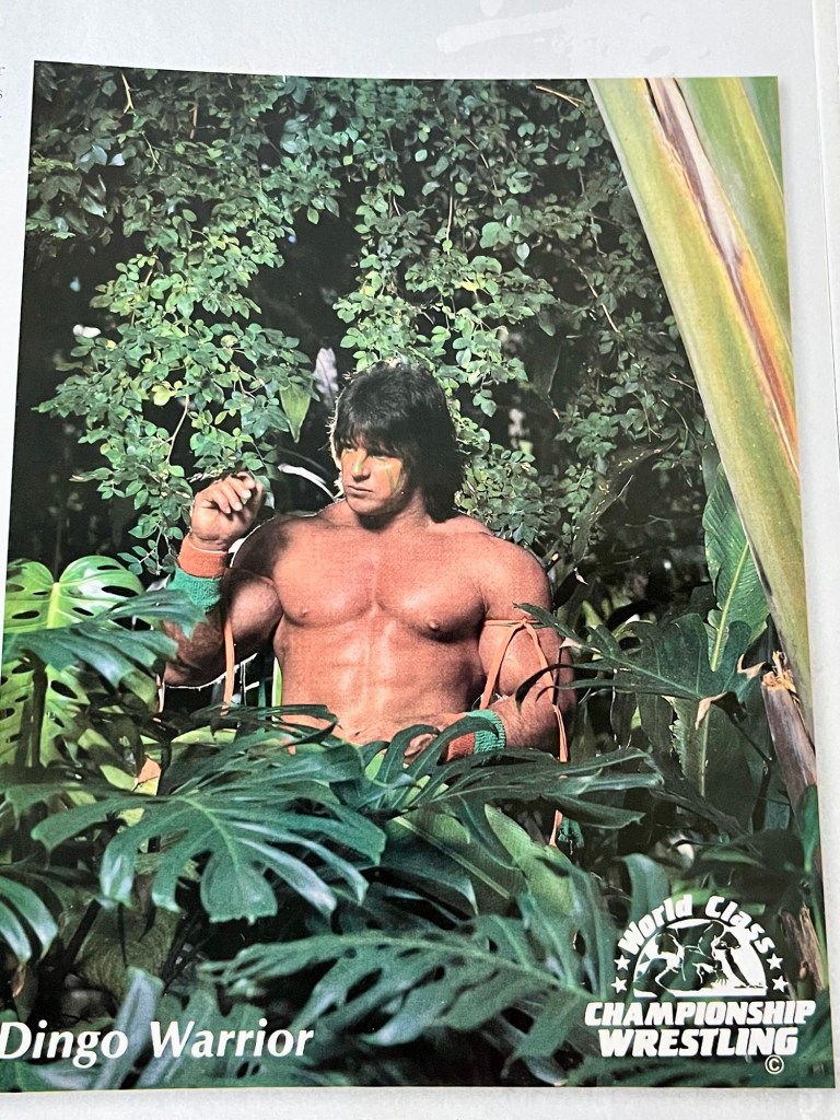 Next, we’ll get into Dingo up in the title. I thought it fitting to end the month with another pic from his early days in WCCW. I had gotten out the book: “ A Life Lived Forever” to look at more possible photos for anyone wondering. Why did they have him pose with that forest around? I did look up some info but no idea if it truly connects to what WCCW was going for. Dingos ( those wild dogs like coyotes here) actually live in many dense areas of Australia, including forest regions. Maybe someone knew that back then but I would have no idea. It can be a “green screen” but looks like he’s holding a leaf? That could be staged also but I still wondered why with the scenery? I may never know but glad to always research on my own anyways! Do I honestly believe they went to an actual forest? Nah~~~ but I will probably never have that answer. 😂🌲🍃